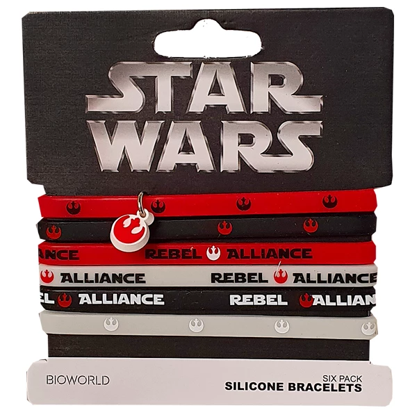Six silicone bracelets with a Star Wars Rebel Alliance theme.
