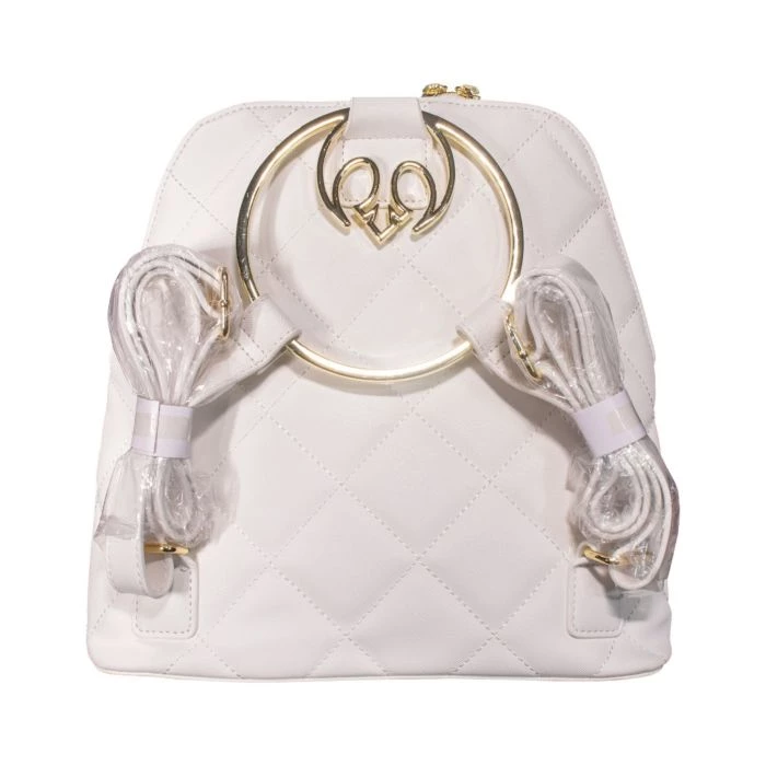 White with Gold Rebel Hardware 11” Faux Leather Mini Backpack